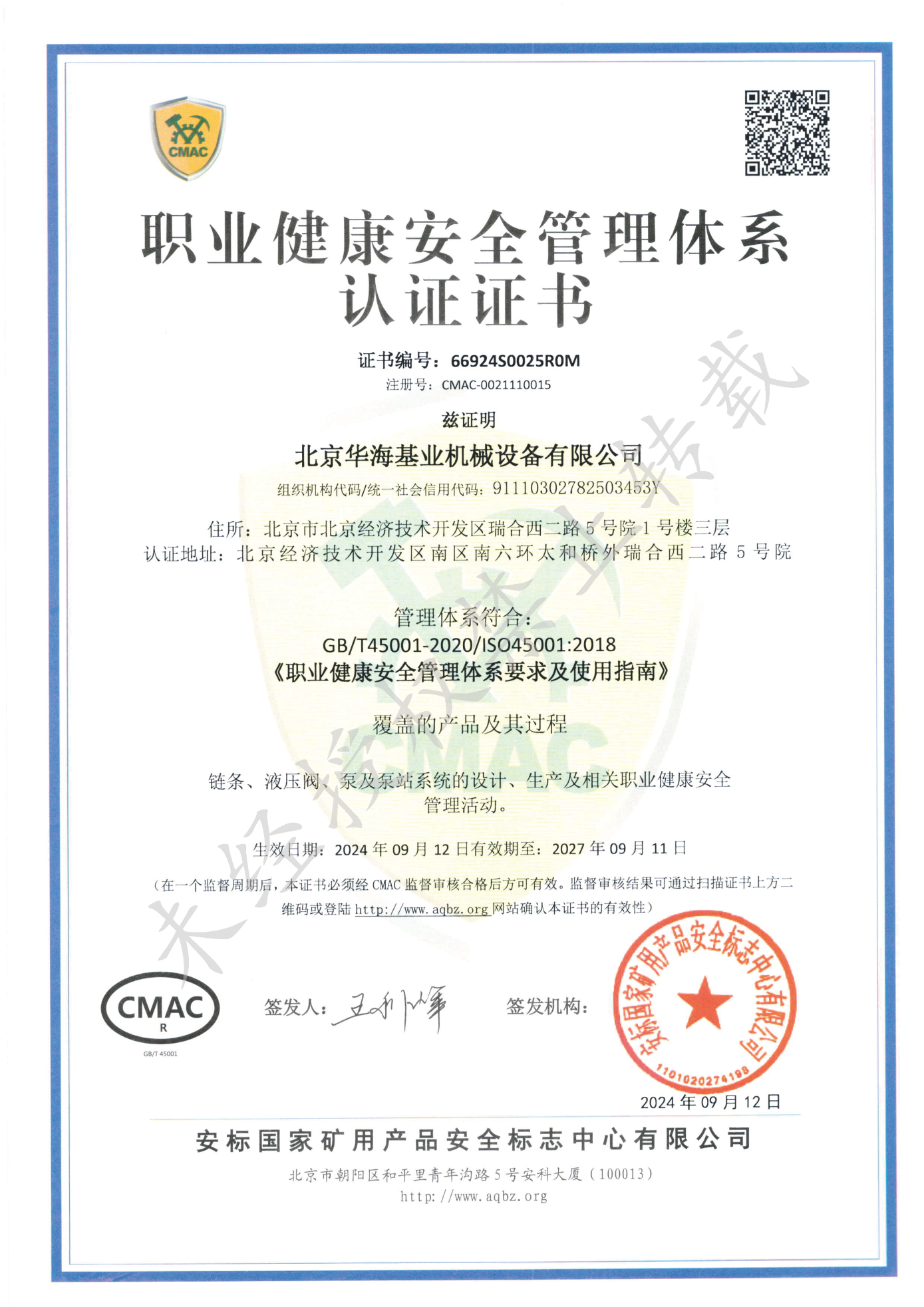 職業(yè)健康安全管理體系認證證書 ISO18000